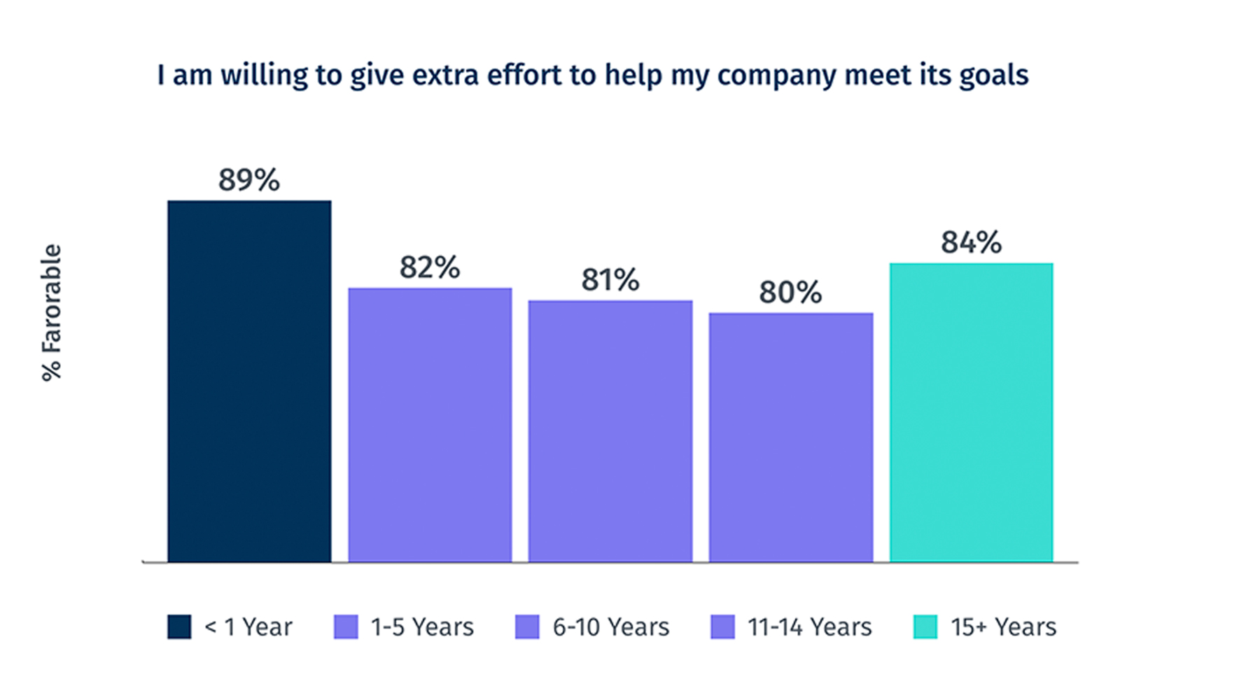 How long an employee has been working at their organization can have a significant impact on what they think about the organization, its culture, and what they value.