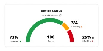 To speed troubleshooting, the enhanced Device Status Tracker displays real-time percentages of online, offline, and pending devices with quick drill-down. And coming next, the Device Insights Tile will offer 7-day trends—like average offline duration and planned vs. unplanned events—so teams can stay proactive and keep networks running smoothly.