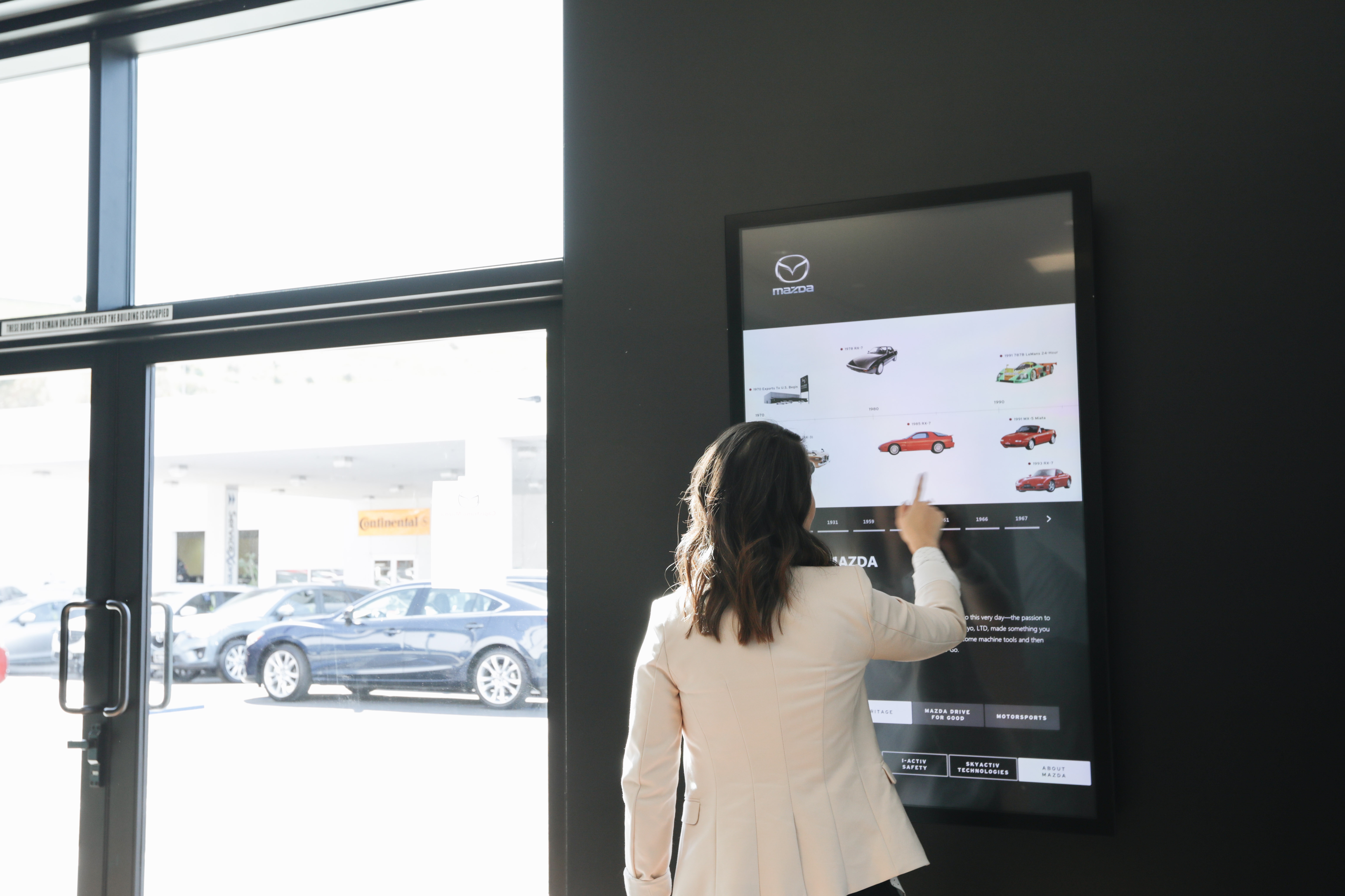 Before we dive deeper into precisely how digital signage is the sales tool of choice in car showrooms today, let’s take a look at how one dealership—the Mazda facility in Capistrano, California— leverages the power of digital signage to drive sales.