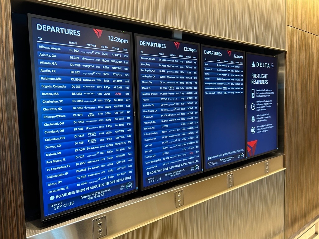 With 1,500 new Flight Information Displays (FIDS) deployed across terminals, Delta’s “Next Gen FIDS” project delivers real-time updates, Sky Club capacity data, and contextual weather information—all through a unified, cloud-based network.
