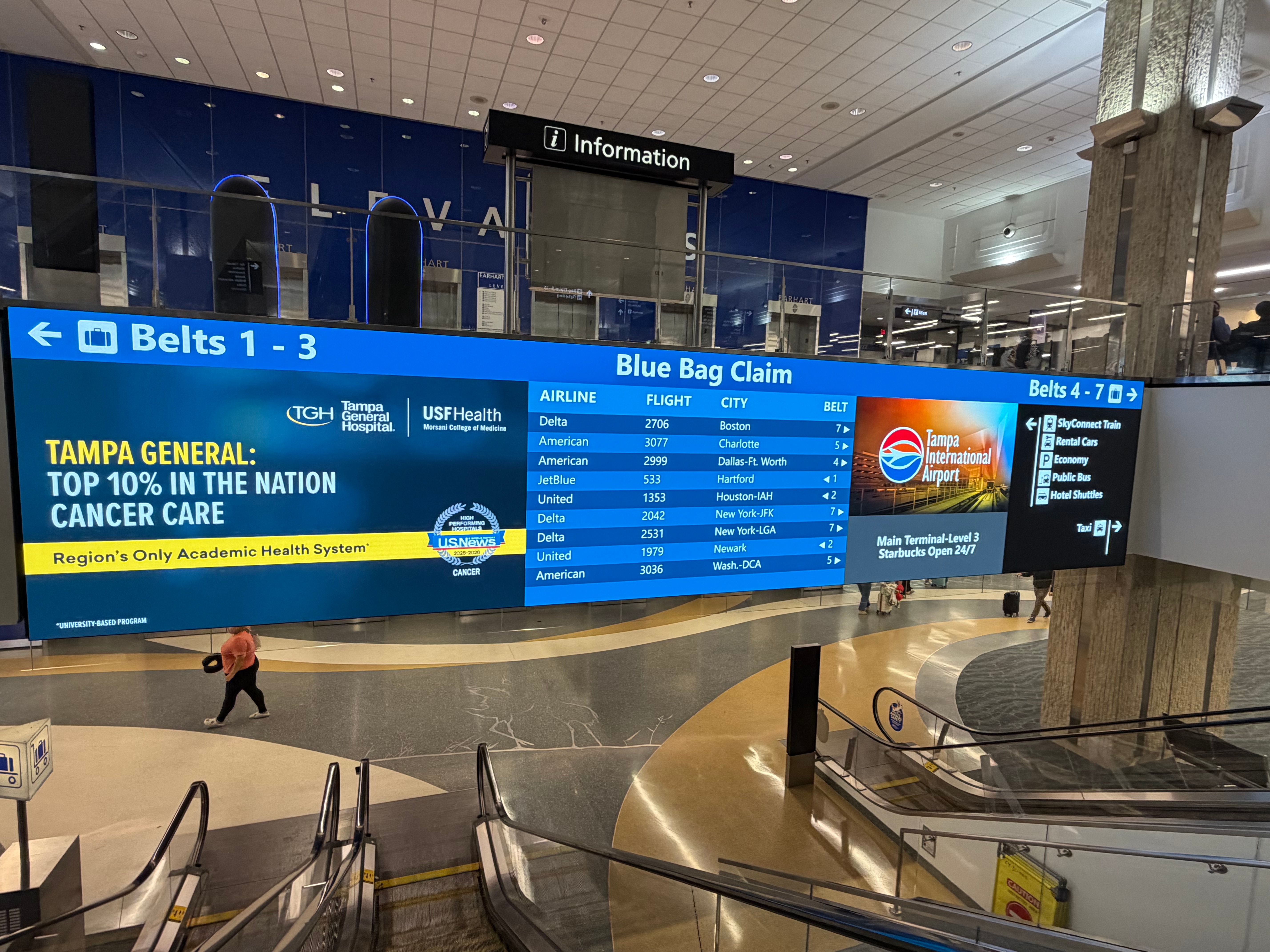 Across Tampa International, digital signage plays a critical role in delivering real-time, contextual communication.