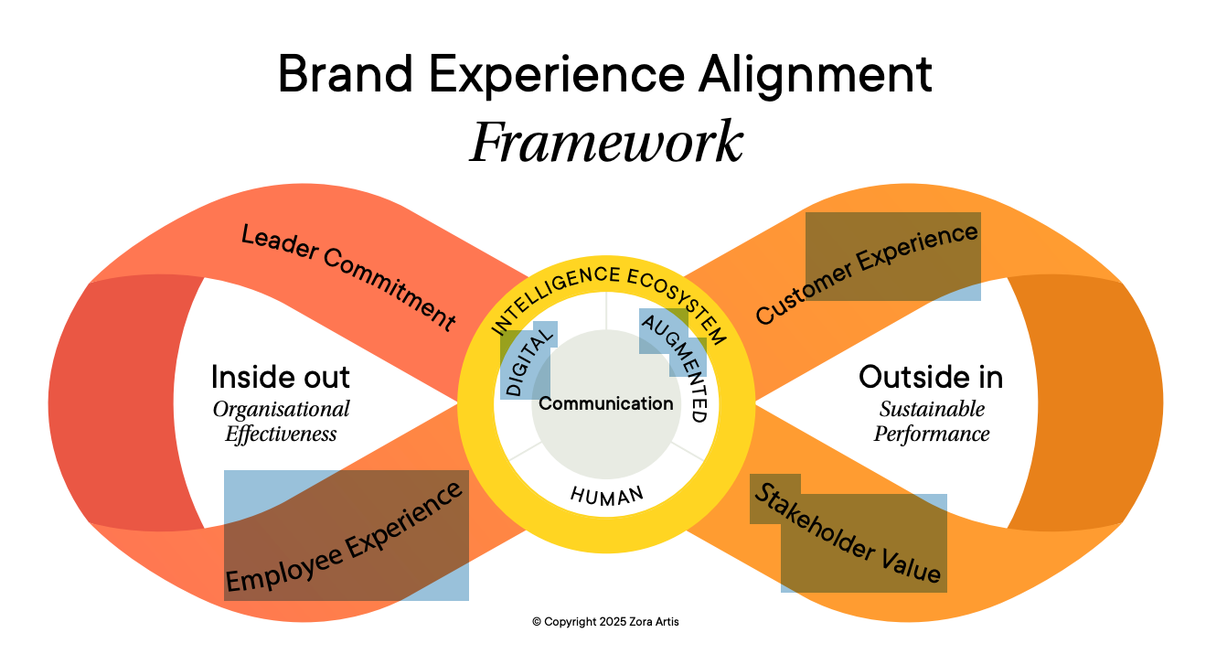 Before agentic featured prominently in organizational conversations, I reworked my earlier thinking into the Brand Experience Alignment framework to reflect the growing complexity and pace of the intelligence ecosystem.